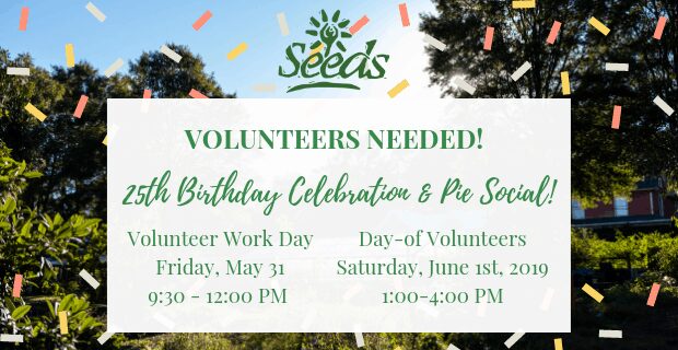 SEEDS is happy to announce our 25th Birthday Celebration and Pie Social will take place on June 1! This event will be a special celebration highlighting SEEDS’ history over the past 25 years and will raise support for SEEDS to continue working with youth in Durham for years to come! We are in need of volunteers for many different capacities for this event, so please sign up if you’d like to be a part of this special event!