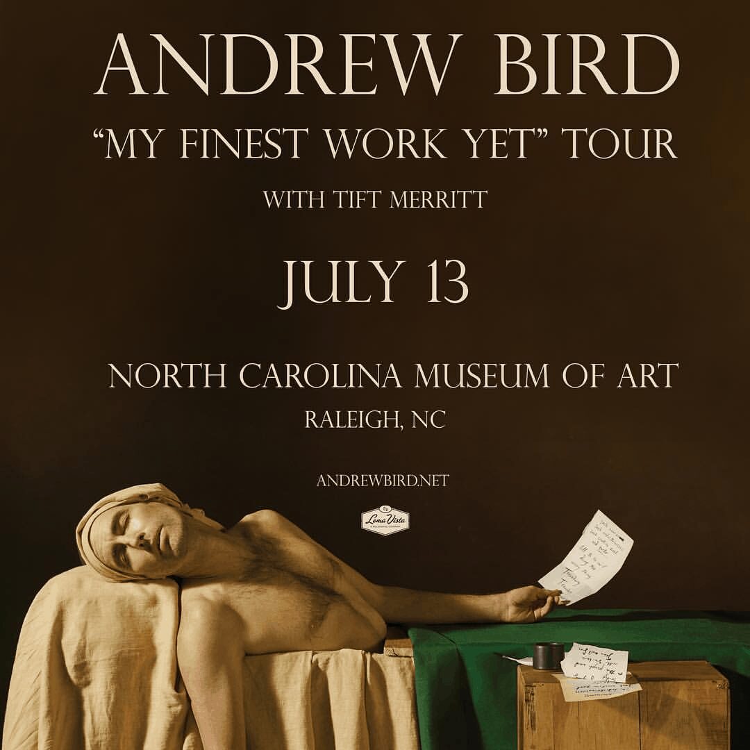 I LOVE SINGING WITH @andrewbirdmusic! So thrilled to be back with him at my favorite place – @ncartmuseum – this summer. Andrew has an amazing new album out today called My Finest Work Yet. I remember when his old-timey band started singing Townes Van Zandt on an empty soundstage at Letterman while all the lights were off in NYC the morning after Hurricane Sandy. Tickets for the show in Raleigh go on sale April 3rd. See you soon! XOX-Tift